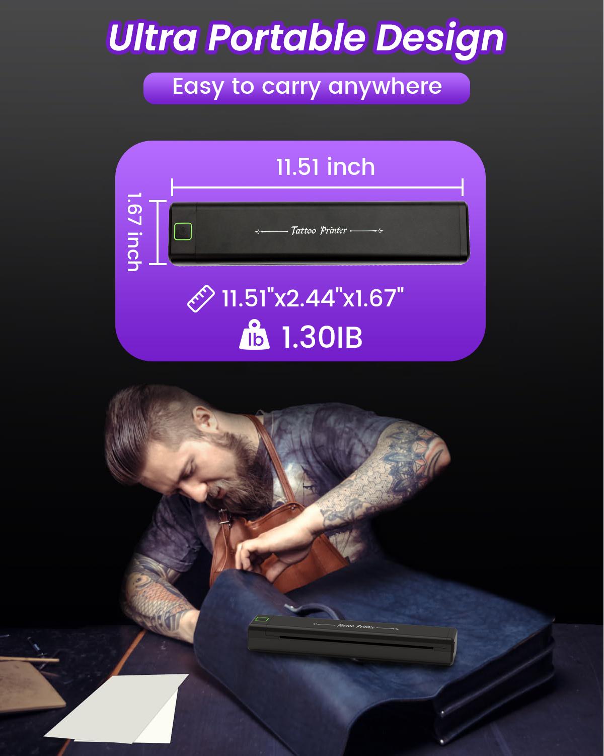 Perfecta para profesionales y artistas del tatuaje que lo hacen por sí mismos : ya sea que estés en un estudio de tatuajes o practiques en casa, esta impresora liviana y portátil cambia las reglas del juego.