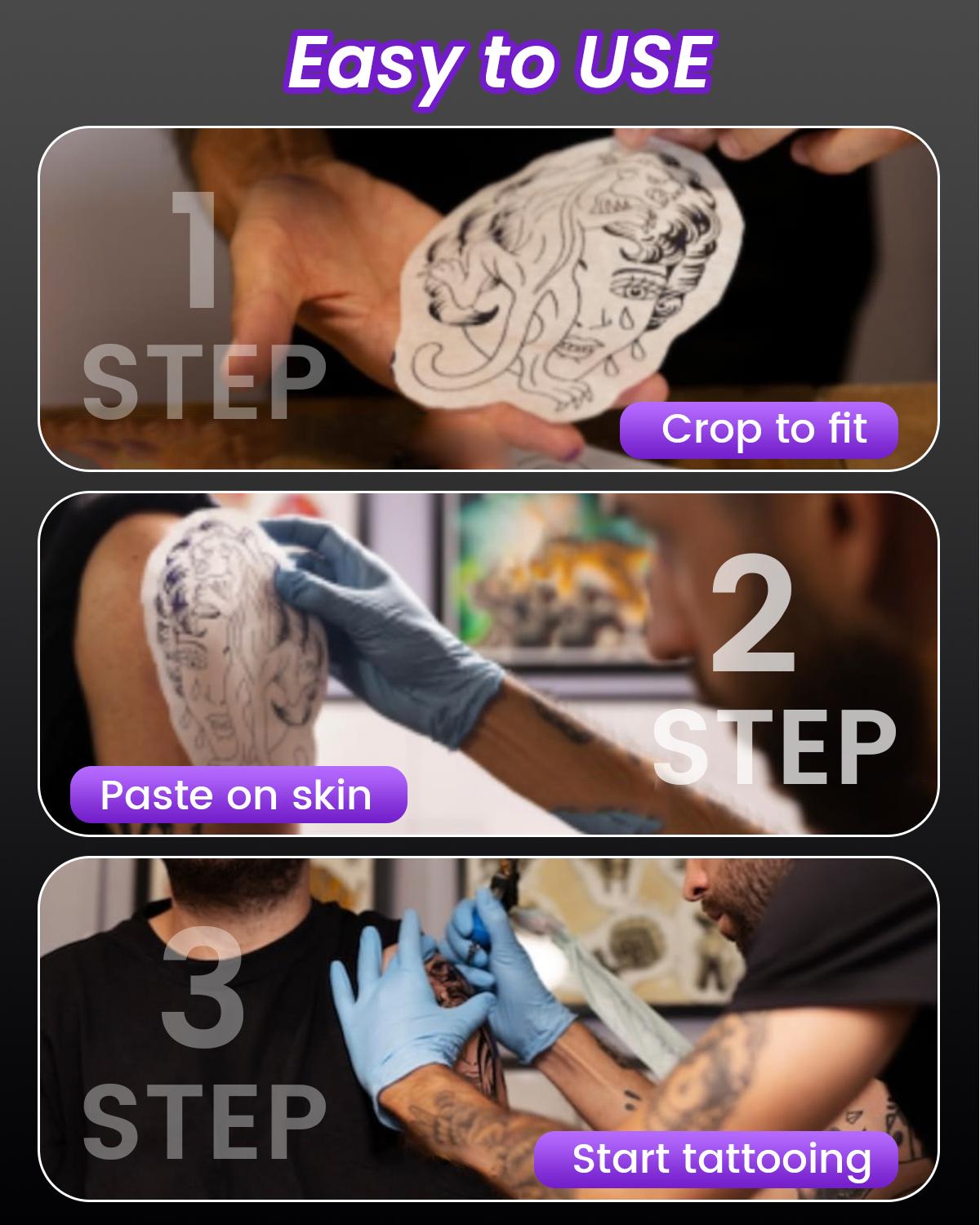 Incluye 10 papeles de transferencia de tatuajes : viene con 10 piezas de papel de transferencia de alta calidad, para que pueda comenzar a tatuar de inmediato sin compras adicionales.